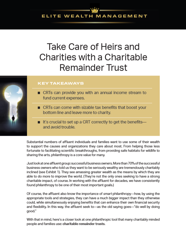 Take Care of Heirs and Charities with a Charitable Remainder Trust