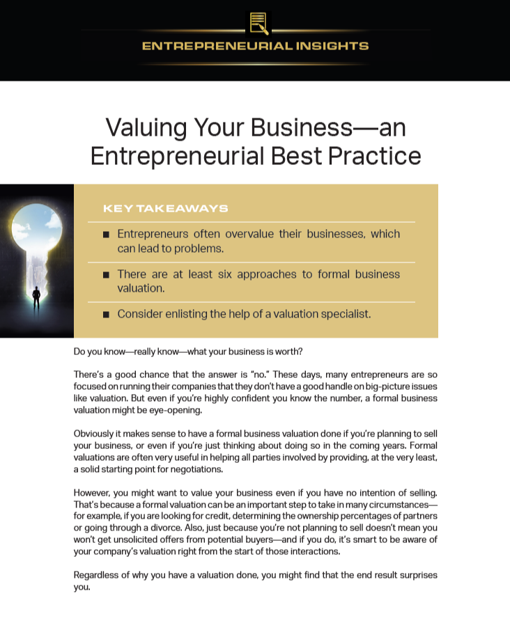 Valuing Your Business—an Entrepreneurial Best Practice